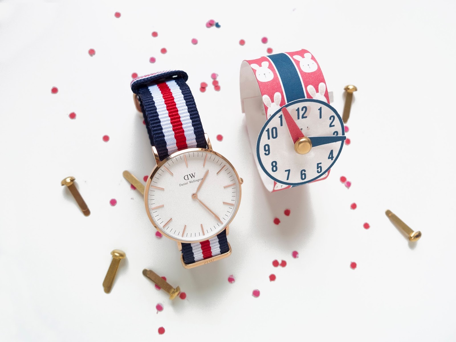 L’orologio è pronto! Fissatelo al polso del vostro bimbo/a con un pò di washi tape o simile. Ora non vi resta che minirvi di molta pazienza e rispondere amorevolmente a tutte le domande del tipo “Sono le 6 mamma, vero? La lancetta dei minuti va così mamma, vero? Ormai sono diventata grande, mamma“. Sì, lo sei.