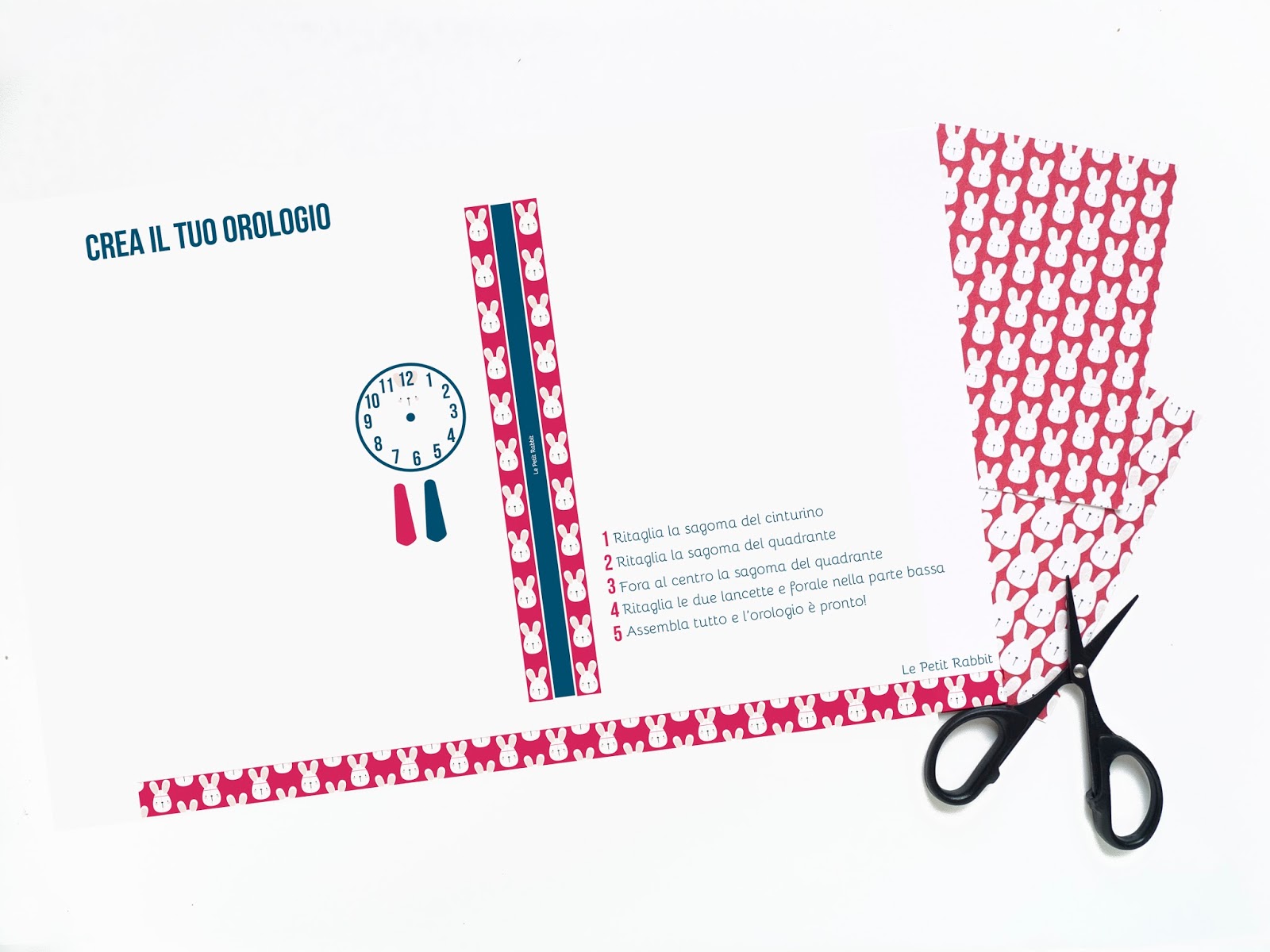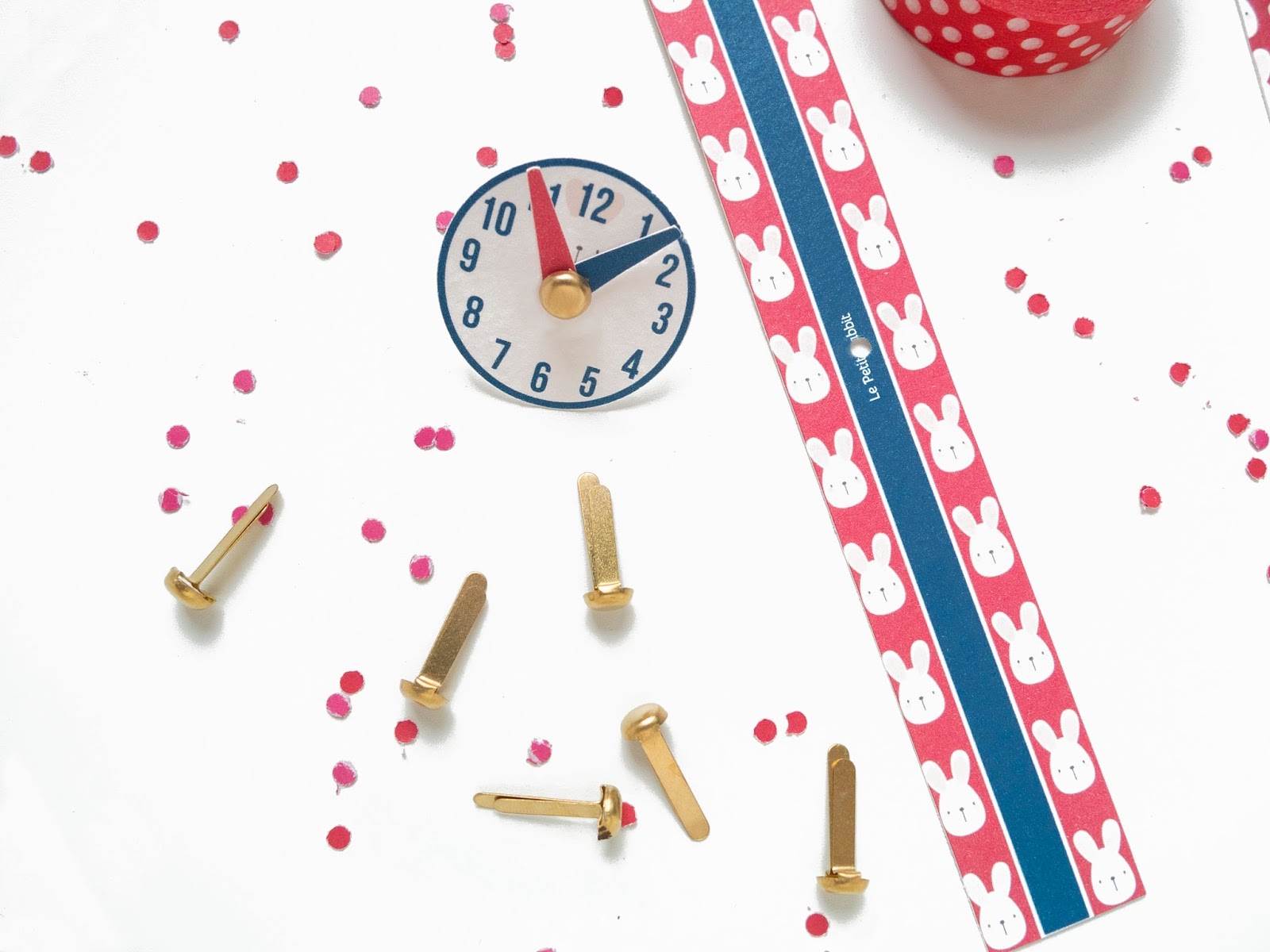 Scaricate il free printable per realizzare l’orologio di carta e munitevi di forbici, un fermacampione, un washi tape o simile.