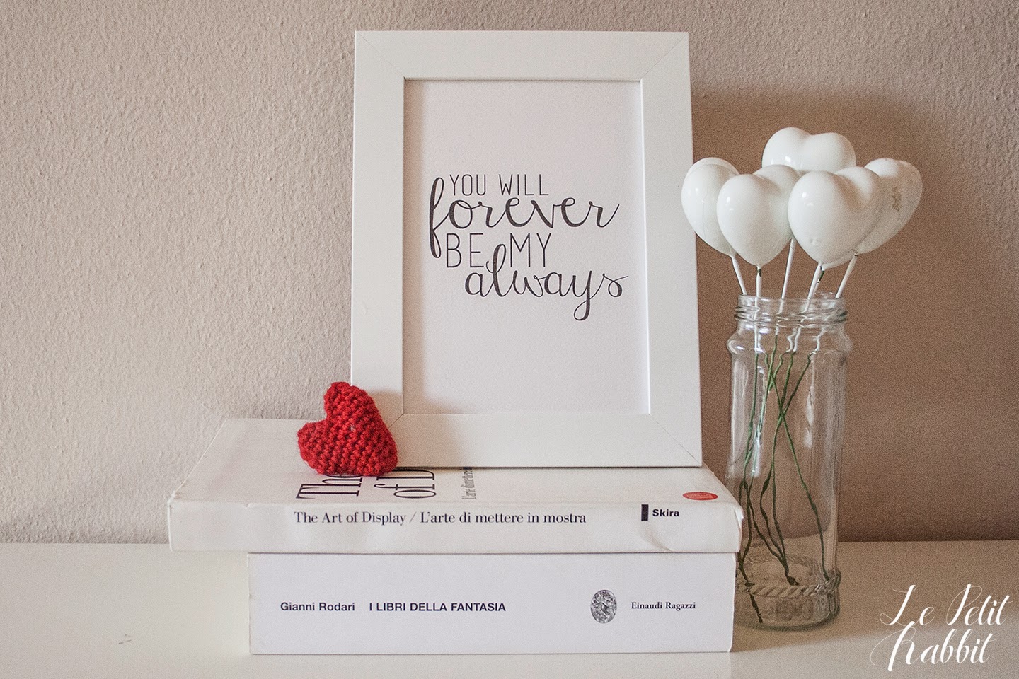 Per celebrare il mio amore ho pensato di realizzare una semplice illustrazione da incorniciare (speriamo che Mr Rabbit non passi di qui prima del 14). Non mi sono fermata a quello, desideravo un pacchettino un pò moderno e quindi ho pensato di realizzare anche tutto il materiale per il packaging: una banda per incartare, due tag e un bigliettino.