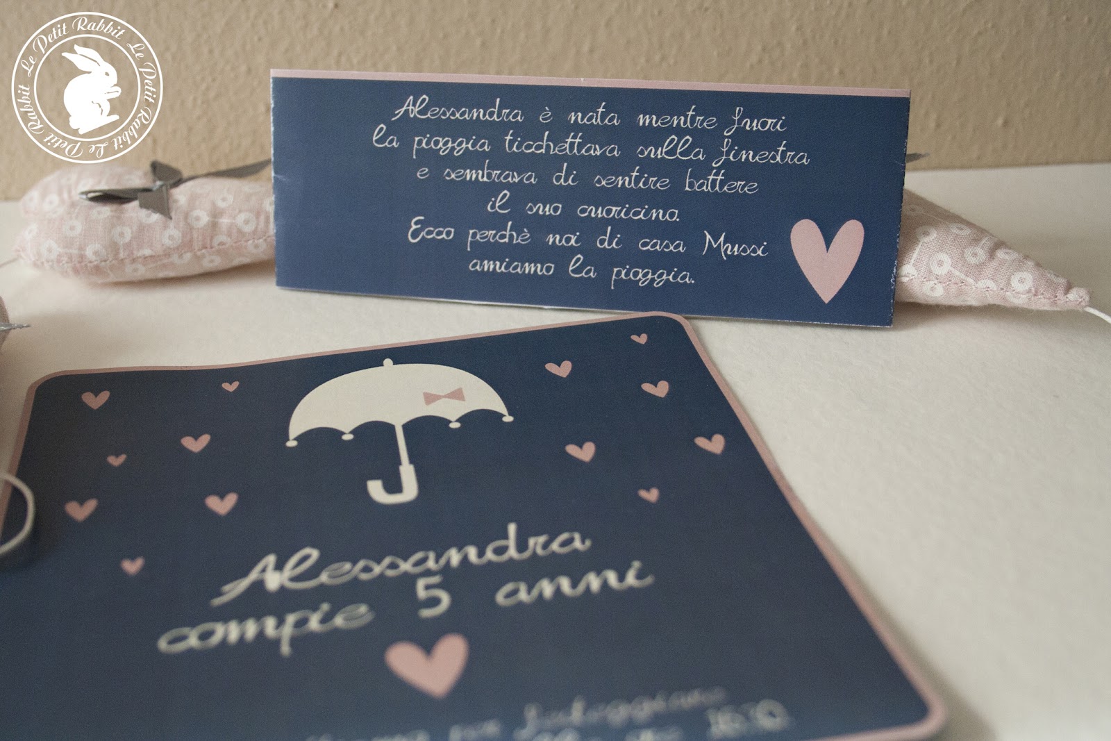 La pioggia è proprio il tema che presenta il compleanno di Alessandra. Sua mamma mi ha raccontato che il giorno in cui è nata, diluviava. La città era bloccata a causa della pioggia e alcuni parenti non sono riusciti a raggiungere in tempo l’opsedale per attendere li la nascita. Ma c’erano la mamma e il papà in sala parto pronti per vedere la loro bambina. La mamma ha chiesto di spegnere la musica in modo di poter ascoltare il rumore della pioggia che era davvero molto forte. Ed è nata Alessandra.
