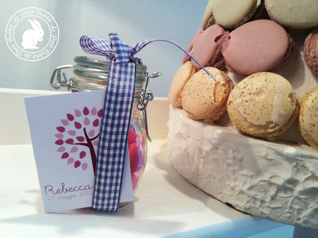Come sapete siamo nel clou della stagione matrimoni, battesimi, comunioni, cresime…e quindi tante piccole e grandi produzioni. Oggi vi mostro un’idea per delle bomboniere adatte per le celebrazioni dei più piccoli. Dalla collaborazione con la mia ormai amata Biancamaria di Marie Antoinette ecco a voi un barattolino di vetro contente confetti lilla, rosa e bordeaux, confezionato con un nastro vichy accompagnato in ultimo da un bigliettino personalizzato. Non c’è che dire, sono sempre i piccoli dettagli che possono fare una grande differenza.