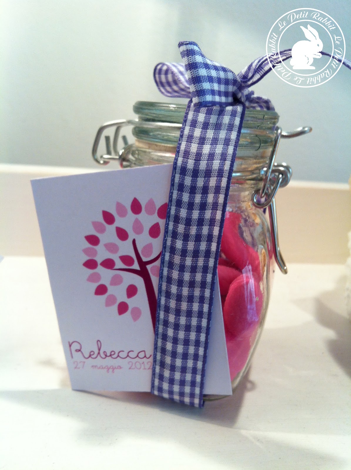 Come sapete siamo nel clou della stagione matrimoni, battesimi, comunioni, cresime…e quindi tante piccole e grandi produzioni. Oggi vi mostro un’idea per delle bomboniere adatte per le celebrazioni dei più piccoli. Dalla collaborazione con la mia ormai amata Biancamaria di Marie Antoinette ecco a voi un barattolino di vetro contente confetti lilla, rosa e bordeaux, confezionato con un nastro vichy accompagnato in ultimo da un bigliettino personalizzato. Non c’è che dire, sono sempre i piccoli dettagli che possono fare una grande differenza.
