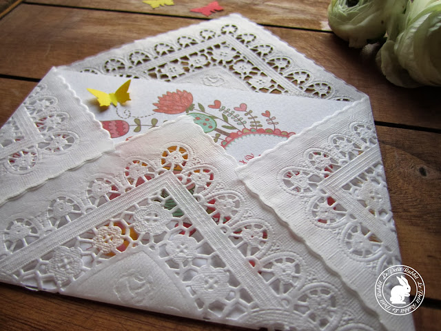 Per rendere il progetto accessibile a tutti ho fatto una ricerca tra i vettoriali gratuiti, apportato le modifiche del caso e poi disegnato il biglietto d’invito. Non ho ovviamente saputo rinunciare a due particolari: le farfalle in treddì (amo scriverlo in questo modo errato) e una busta realizzata con un centrino di carta pizzo. Il tutto chiuso con spago grezzo e da qualche altra farfalla treddì.