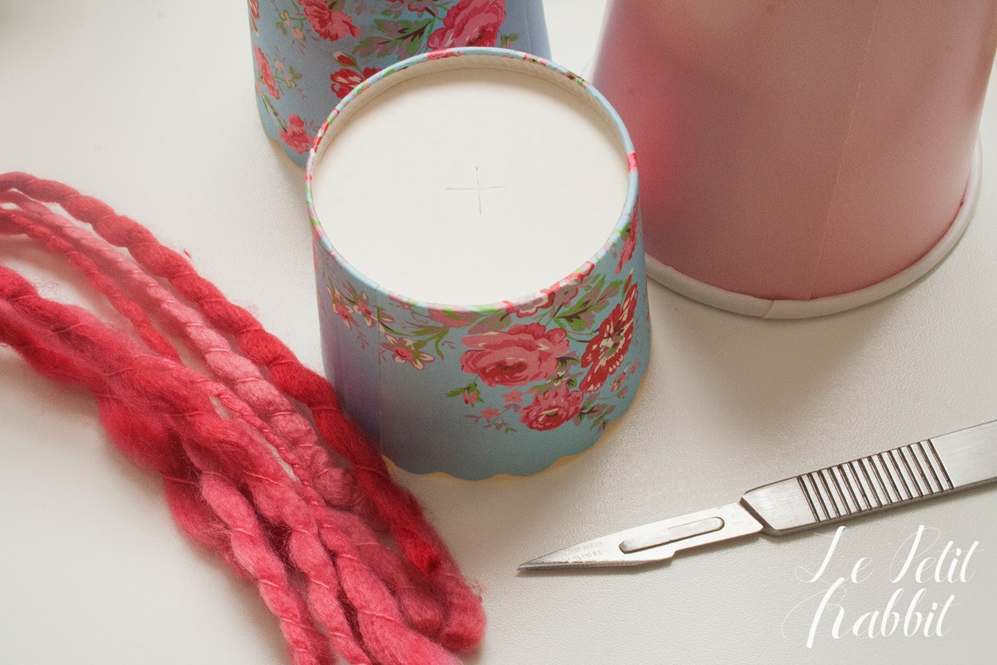 Era tempo che guardavo questi pirottini e cercavo un giusto progetto per loro. Me li ha regalati Manuela forse 2 anni fa. Così ho acquistato i bicchieri rosa e aperto la scatola delle stoffe. Sono pessima con l’ago e il filo per cui ho pensato di usarle così.