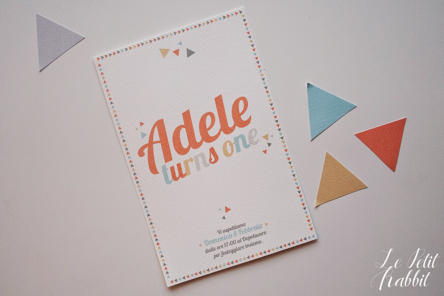 Per l’invito abbiamo scelto una palette corallo, giallo, azzurro e grigio.