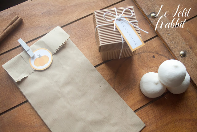 Per i bimbi ho preparato delle piccole scatolette ripiene di bon bon morbidosi e caramelle frizzy all’arancia (alla zucca credo non le abbiamo ancora inventate). Una semplice tag per ricordare loro che si è scelto il “dolcetto”…ma quest’anno ho voluto fare anche un’altra cosina, un pensierino per i genitori che in questa sera accompagnano i più piccoli in giro per le case di sconosciuti. Non so da voi, ma qui hanno sempre un’aria un pò imbarazzata e timorosa perchè non è detto che tutti abbiamo lo spirito di Halloween. Ho scelto di regalare loro una ricetta che mi sta molto a cuore. La ricetta del Pumpkin Spice Latte, una bevanda gustosissima che ho bevuto per la prima volta in Canada durante il viaggio di nozze. La si trova in una nota catena di caffetterie e ogni scusa era buona per fermarsi e bere una tazza di Latte alla zucca. Quindi la reputo una delle ricette del cuore, ma prima di proporla ho girato un pò su internet in cerca di una ricetta homemade, genuina e sana e l’ho trovata nel sito de La cuochina sopraffina , che ringrazio molto. Per leggere per intero la ricetta cliccate qui, provatela perchè sono sicura ne sarete entusiaste.