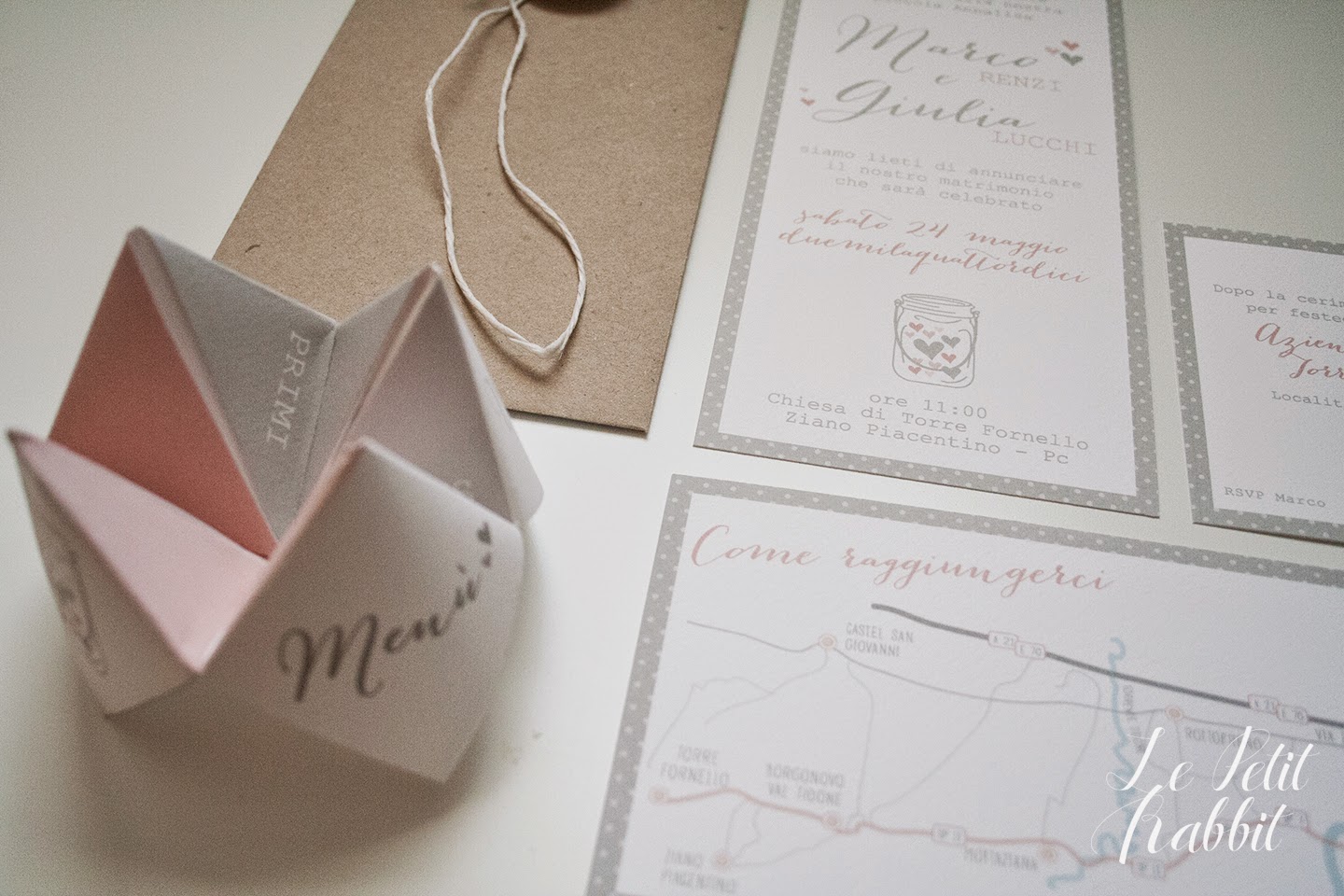 All’interno oltre alla partecipazione e all’invito alla cerimonia ho disegnato la mappa per raggiungere la location.